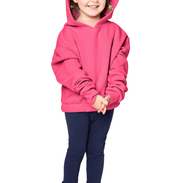 Brighten her casual look with this oversized pullover hoodie in a vibrant bubblegum pink. Designed for maximum comfort, it features a relaxed silhouette with dropped shoulders and a cozy integrated hood. The soft-touch fleece fabric ensures warmth during cooler days, while the ribbed hem and cuffs provide a snug, secure fit. This versatile piece is perfect for everyday play or a modern, layered streetwear style.